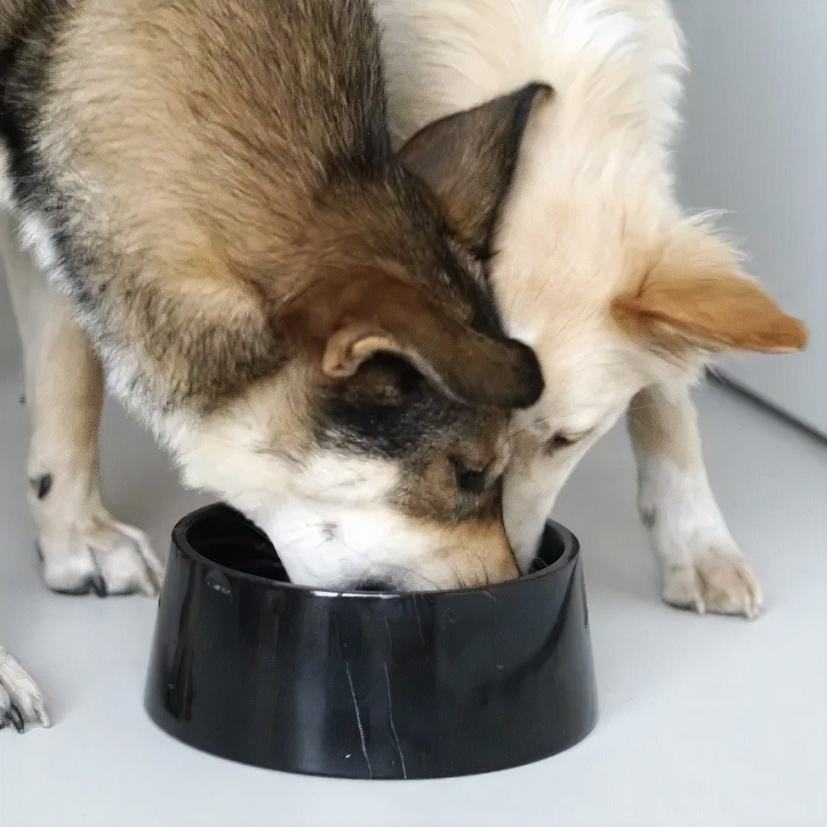 Det finska företaget Yoldia Scandinavia har designat en underbar matplats i natursten för små hundar.